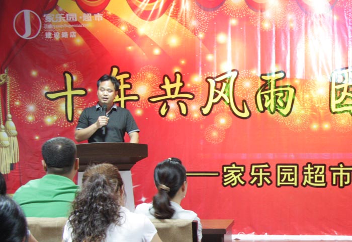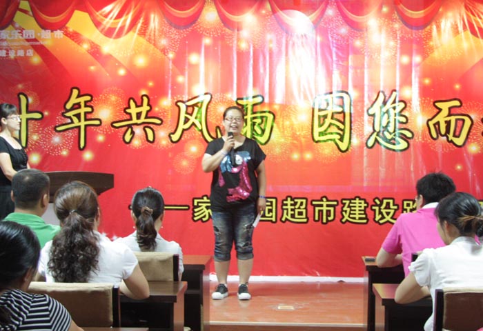 為了感謝建設路店員工十年來辛勤的付出,并對在閉店過程中涌現的先進個人和團隊進行表彰,超市家電事業部于7月8日上午9:30組織召開了建設路店閉店評先表彰大會。表彰大會伊始,主持人講述了藍絲帶的故事,緊接著通過短片回顧、現場頒獎等環節逐步將現場氣氛推向高潮,員工感動得熱淚盈眶。最后,秉著關愛員工的思想,超市家電事業部對每位員工做了安置,并鼓勵她們以更大的熱情投入到新的工作環境中。